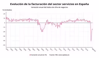 Con el descenso de agosto, los servicios encadenan seis meses consecutivos de retrocesos interanuales como consecuencia de la pandemia y sus efectos sobre la economía.