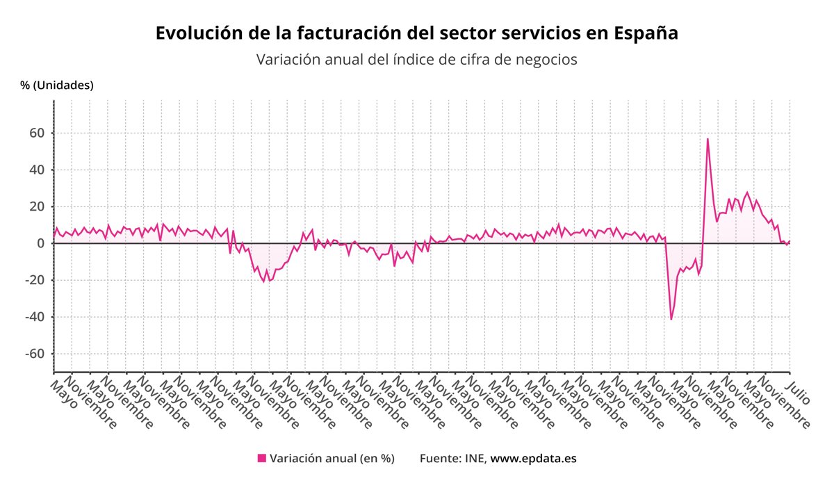 El sector servicios recortó su facturación un 0,5% el pasado mes de agosto respecto al mismo mes de 2022, retomando así los descensos después de que en julio las ventas aumentaran un 1,5% interanual, según ha informado este miércoles el Instituto Nacional de Estadística (INE).