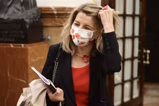 La vicepresidenta segunda y ministra de Trabajo y Economía Social, Yolanda Díaz, a su salida de una sesión plenaria en el Congreso - Eduardo Parra - Europa Press