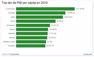 Así variará el 'top ten' de países por Producto Interior Bruto (PIB) per cápita entre 2014 y 2019.
