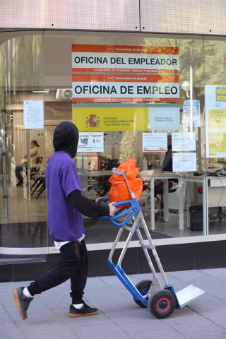 Archivo - Un joven pasa con una carretilla por una oficina de empleo de Madrid (España), en una imagen de archivo. - Marta Fernández Jara - Europa Press - Archivo
