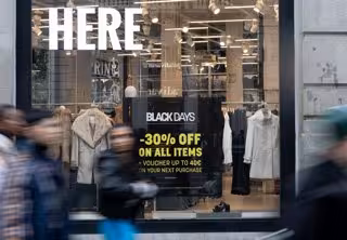 Varias personas pasan por delante de los comercios que anuncian los descuentos del Black Friday - Eduardo Parra - Europa Press