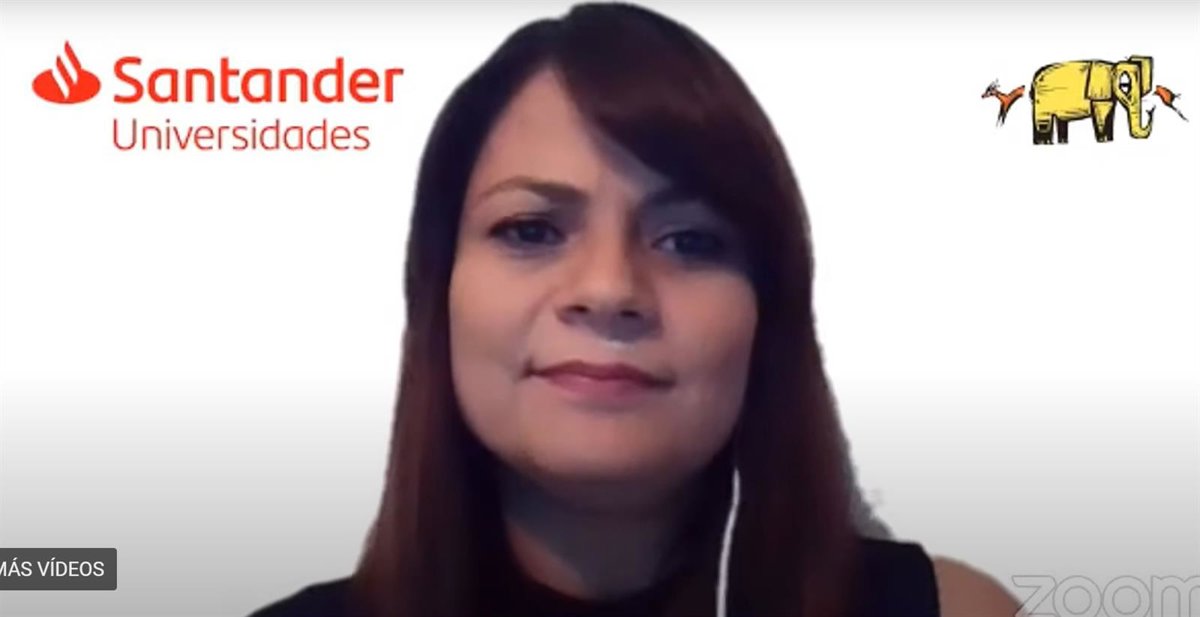 La directora global de emprendimiento de Santander Universidades, Adriana Tortajada, en la presentación del informe. - EUROPA PRESS