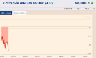 Por su parte, en la Bolsa de Madrid las acciones de Airbus perdían un 1,45% tras la apertura de sesión, situándose en 61,20 euros.