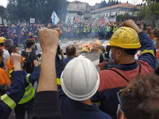 Protesta de trabajadores de Alcoa ante la Xunta - EUROPA PRESS