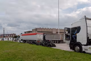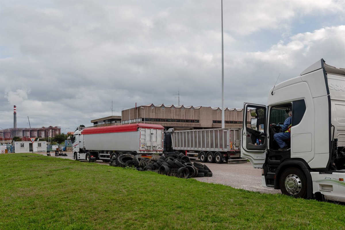Varios camiones y neumáticos en las inmediaciones de la fábrica de Alcoa en San Cibrao, un día después de que los trabajadores alcanzaran un acuerdo con la empresa, a 29 de diciembre de 2021, en San Cibrao, Cervo, Lugo, Galicia (España). Los trabajadore - Carlos Castro - Europa Press