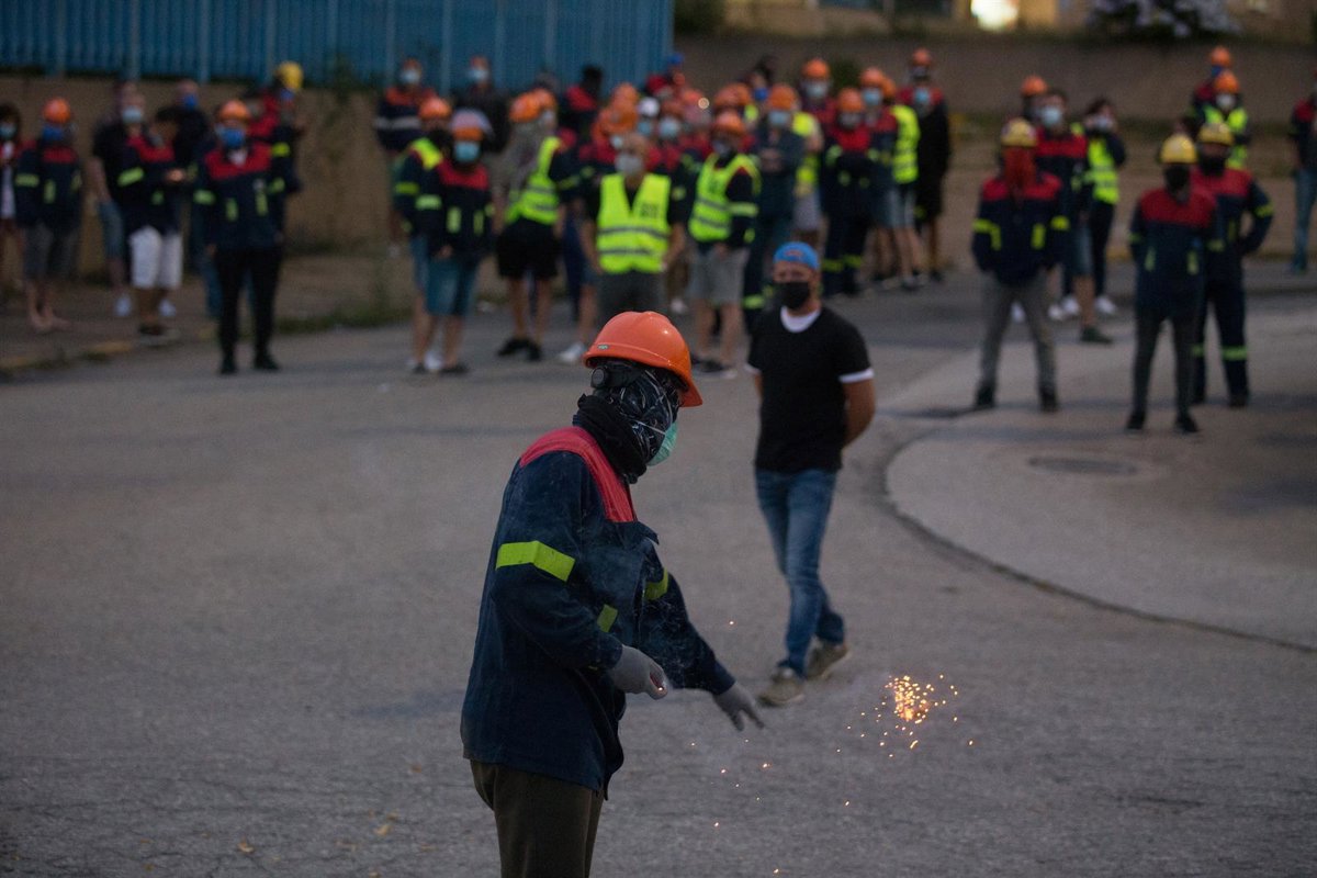Un manifestante tira un petardo durante una concentración nocturna convocada por el comité de Alcoa San Cibrao, en el entorno de la fábrica de San Cibrao, en Lugo, Galicia (España), a 30 de junio. - Carlos Castro - Europa Press