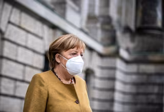 04 March 2021, Berlin: German Chancellor Angela Merkel leaves the Reichstag building after attending a plenary session in the German Bundestag. In its session, the parliament deals with the enacted regulations to contain the Coronavirus pandemic. Photo: - Michael Kappeler/dpa
