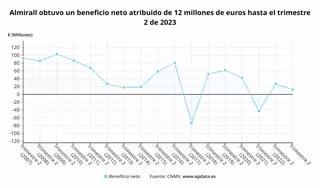 Almirall obtuvo un beneficio neto de 12 millones de euros en el primer semestre del año, cifra un 56% inferior a la del mismo periodo de 2022, según ha informado este lunes la compañía biofarmacéutica a la Comisión Nacional del Mercado de Valores (CNMV).