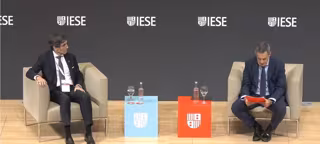 El presidente ejecutivo de Telefónica, José María Álvarez-Pallete, y el profesor de IESE, Philip Moscoso - IESE