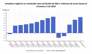 Según ha informado este miércoles la compañía a la Comisión Nacional del Mercado de Valores (CNMV), el beneficio ajustado de Amadeus se situó entre enero y junio en 683,4 millones de euros, frente a los 560,3 millones de euros de 2023, lo que supone un 22% más.