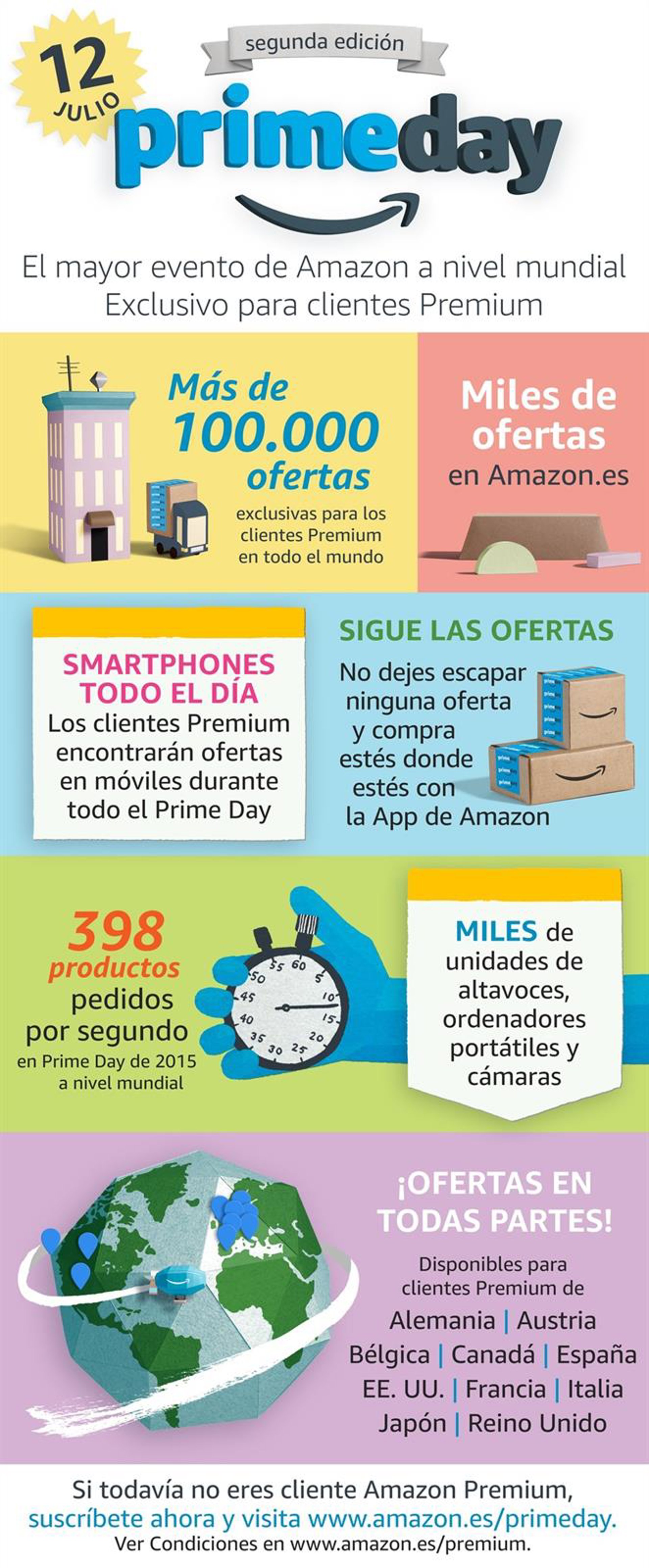 Amazon celebrará la segunda edición de su 'Prime Day' el próximo martes 12 de julio con más de 100.000 ofertas en todo el mundo destinadas los clientes Premium, que a partir de las doce de la noche podrán acceder a descuentos y bucear en las nuevas ofertas cada cinco minutos a partir de las ocho de la mañana.