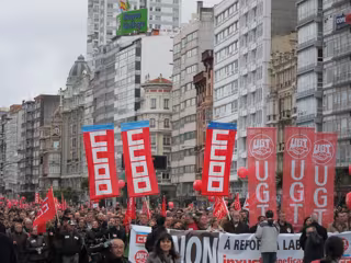 En una nublada mañana de domingo, aunque la lluvia ha respetado a los asistentes durante toda la movilización, la manifestación de A Coruña ha arrancado sobre las 12.15 horas de la Praza da Palloza, comandada por una pancarta contra la "injusta, ineficaz e inútil" reforma laboral, en una concurrida cita en la que han predominado las pancartas y globos de los sindicatos mayoritarios --la CIG no se ha sumado a la protesta--.