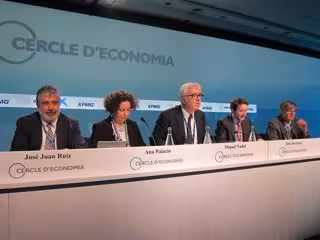 Ana de Palacio ha participado en la Reunión del Círculo de Economía, patrocinado por CaixaBank, KPMG e Indra, durante el debate 'Nuevos riesgos económicos y geopolíticos', junto a Josu Jon Imaz (Repsol), José Juan Ruiz (BID) y James Steinberg (exvicesecretario de Estado de Barack Obama).