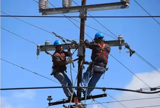 Archivo - Trabajadores en un poste telefónico - CCOO - Archivo