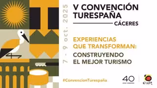 La V Convención Turespaña, que tendrá lugar en el Palacio de Congresos de Cáceres (Extremadura) desde este martes, 7 de octubre, hasta el jueves, presentará las líneas generales de la Estrategia España Turismo 2030, que impulsa el Ministerio de Industria y Turismo a través de la Secretaría de Estado de Turismo.