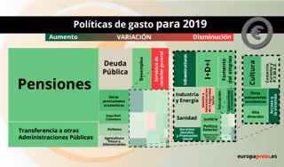 Este es el desglose por políticas de gasto de los Presupuestos Generales del Estado 2019:
