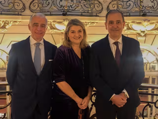 El antiguo presidente de la Asociación de Aguas Minerales de España, Francisco Vallejo, la secretaria general del Sector del Agua Mineral en España, Irene Zafra, y el nuevo presidente de ANEABE, José Manuel García. - LA ASOCIACIÓN DE AGUAS MINERALES DE ESPAÑA.