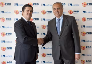 El presidente de Endesa, Borja Prado Eulate, y el presidente de la Federación Española de Baloncesto (FEB), José Luis Sáez, han firmado un acuerdo de patrocinio para las próximas tres temporadas de la selección española y de la Copa del Mundo de Baloncesto 2014.