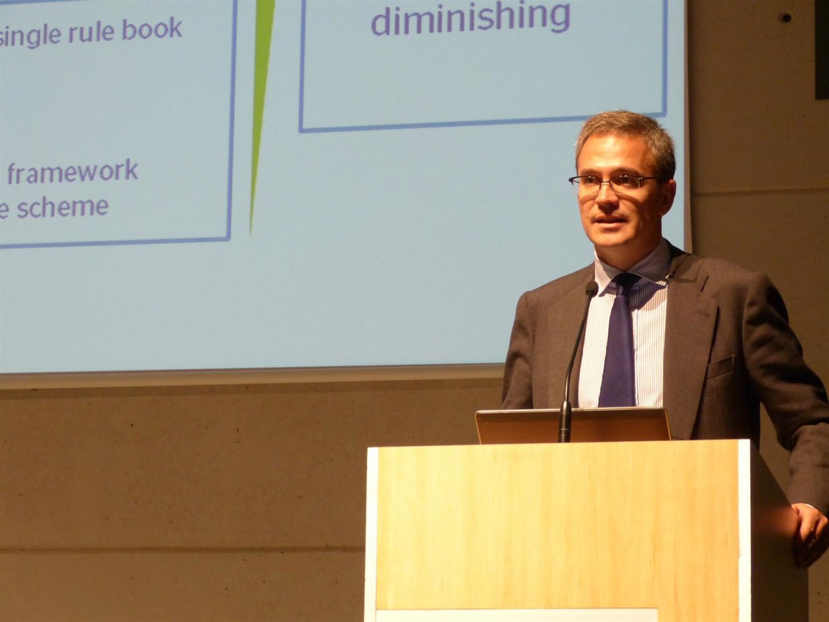 Preguntado por el modelo de 'banco malo' español, ha confiado en que la transferencia de los activos inmobiliarios se haga a valor real y "genere confianza en la solvencia de las entidades que permanezcan".