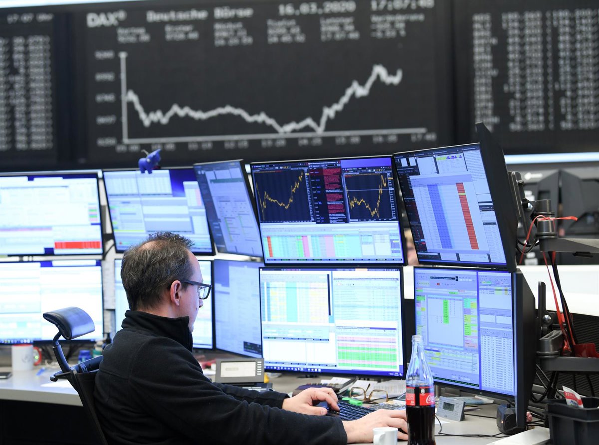 Archivo - 16 March 2020, Frankfurt/Main: A stock trader sits in front of his monitors in the trading room of the Frankfurt Stock Exchange. As a result of the worsening coronavirus crisis, the German share index Dax has fallen below the 9000 point mark. - Arne Dedert/dpa - Archivo