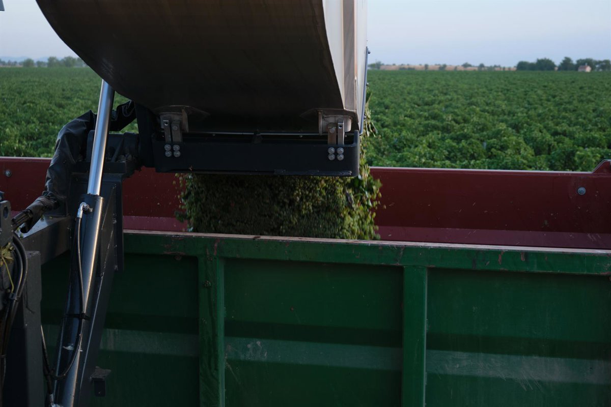 Archivo - La vendimiadora descarga las uvas en un remolque durante la vendimia de la uva Sauvignon Blanc, a 25 de agosto de 2022, en Manzanares, Ciudad Real, Castilla La-Mancha (España). - Rey Sotolongo - Europa Press - Archivo
