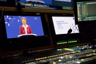 HANDOUT - 18 March 2021, Belgium, Brussels: President of the European Commission Ursula von der Leyen takes part in the European Innovation Council via videoconference. Photo: Etienne Ansotte/European Commission/dpa - ATTENTION: editorial use only and o - Etienne Ansotte/European Commiss / DPA