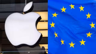 El logo de Apple junto a la bandera de la Unión Europea. - SVEN HOPPE / DPA - ALICIA WINDZIO / DPA.