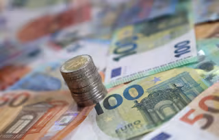 Archivo - FILED - 15 May 2024, Bavaria, Kaufbeuren: A stack of two-euro coins stands on various euro banknotes. Photo: Karl-Josef Hildenbrand/dpa - Karl-Josef Hildenbrand/dpa - Archivo