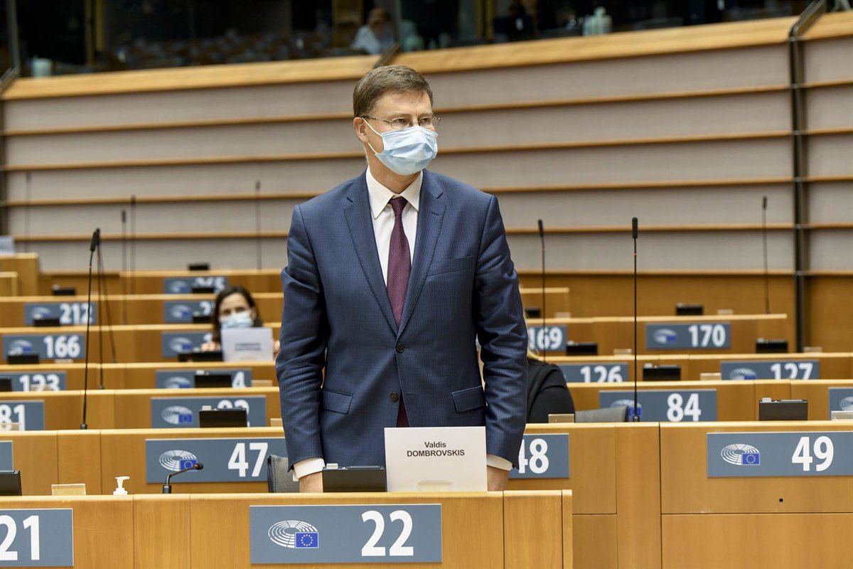 HANDOUT - 07 October 2020, Belgium, Brussels: Vice President of the EU Commission Valdis Dombrovskis, who has been appointed as EU Commissioner for Trade attends a plenary session of the European Parliament. Photo: Emilie Gomez/European Parliament/dpa - - Emilie Gomez/European Parliament / DPA - Archivo
