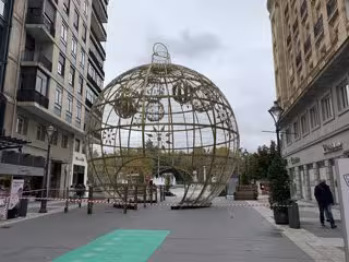 Instalación de la gran bola de Navidad en la calle Santiago de Valladolid. - EUROPA PRESS