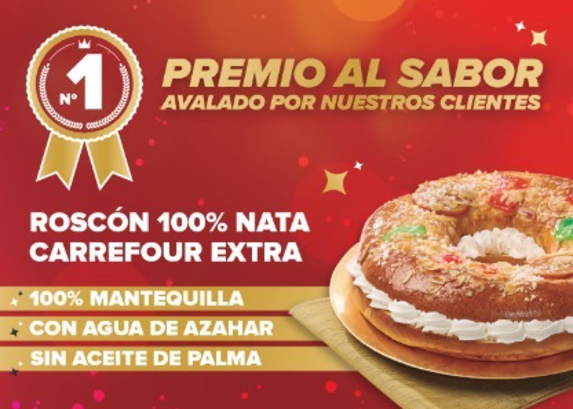 La gama de roscones tradicionales de Navidad dentro de su marca Carrefour Extra se compone de 12 referencias, todos elaborados con ingredientes 100% naturales. Para completar su surtido, ofrece el roscón Selection Carrefour & Lord Dani, creado por el chef Dani García y elaborado con doble nata 100%, frutos rojos e ingredientes 100% naturales.
