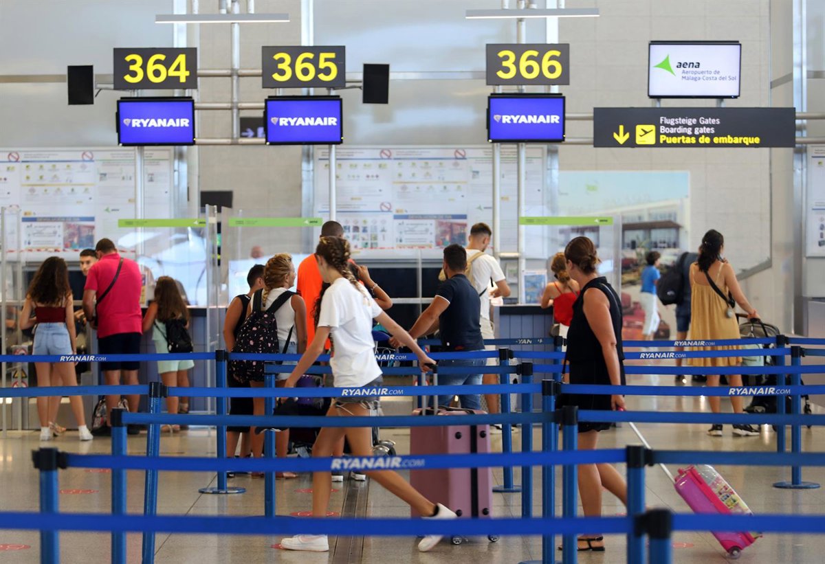 Archivo - Cientos de turistas hacen colas en los puestos de embarque de Ryanair, en el Aeropuerto Costa del Sol, - Álex Zea - Europa Press - Archivo