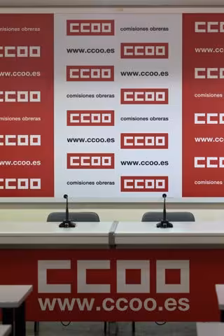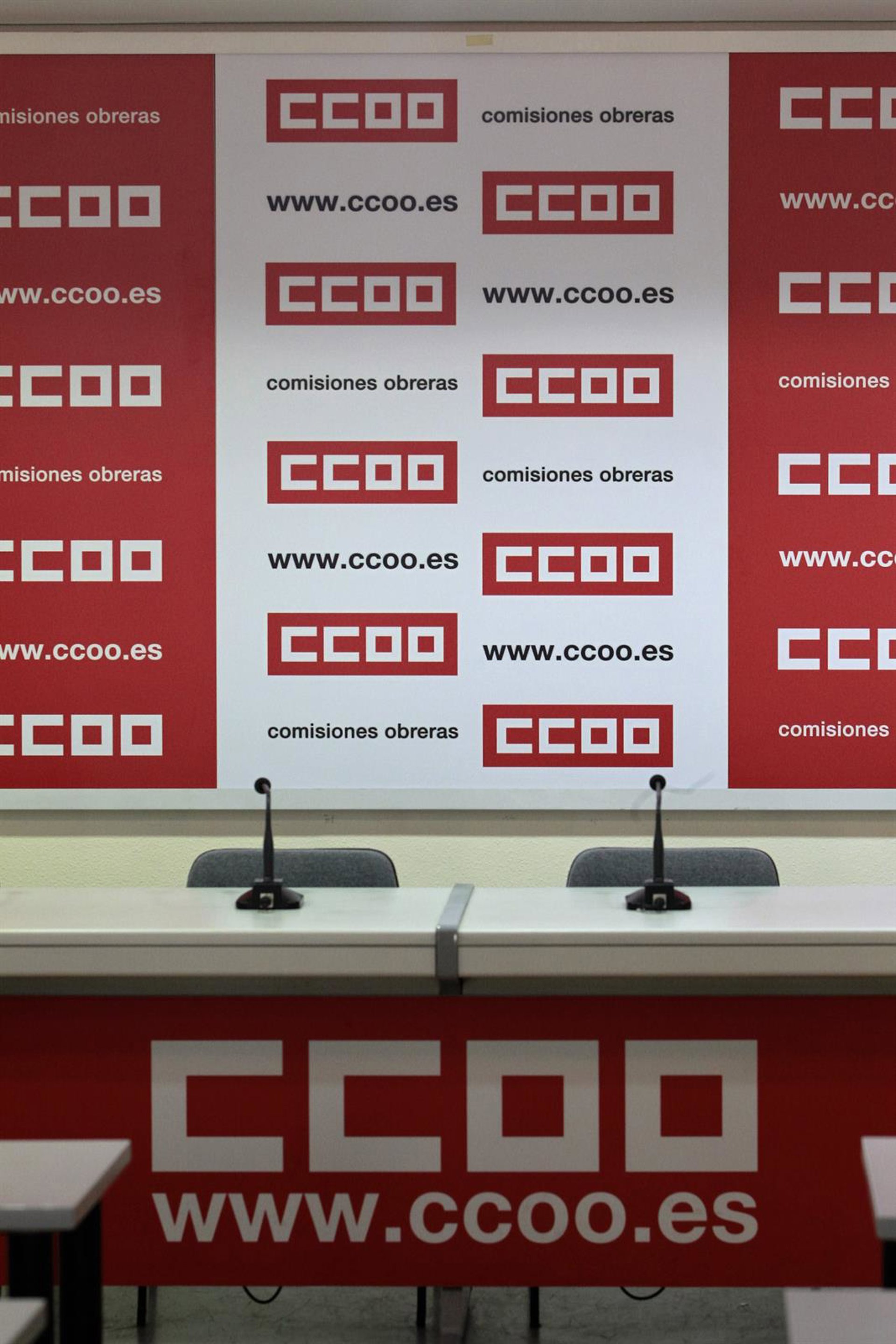 Archivo - Sede de CCOO, Sala de rueda de prensa de Comisiones Obreras, logo de CCOO - EUROPA PRESS - Archivo