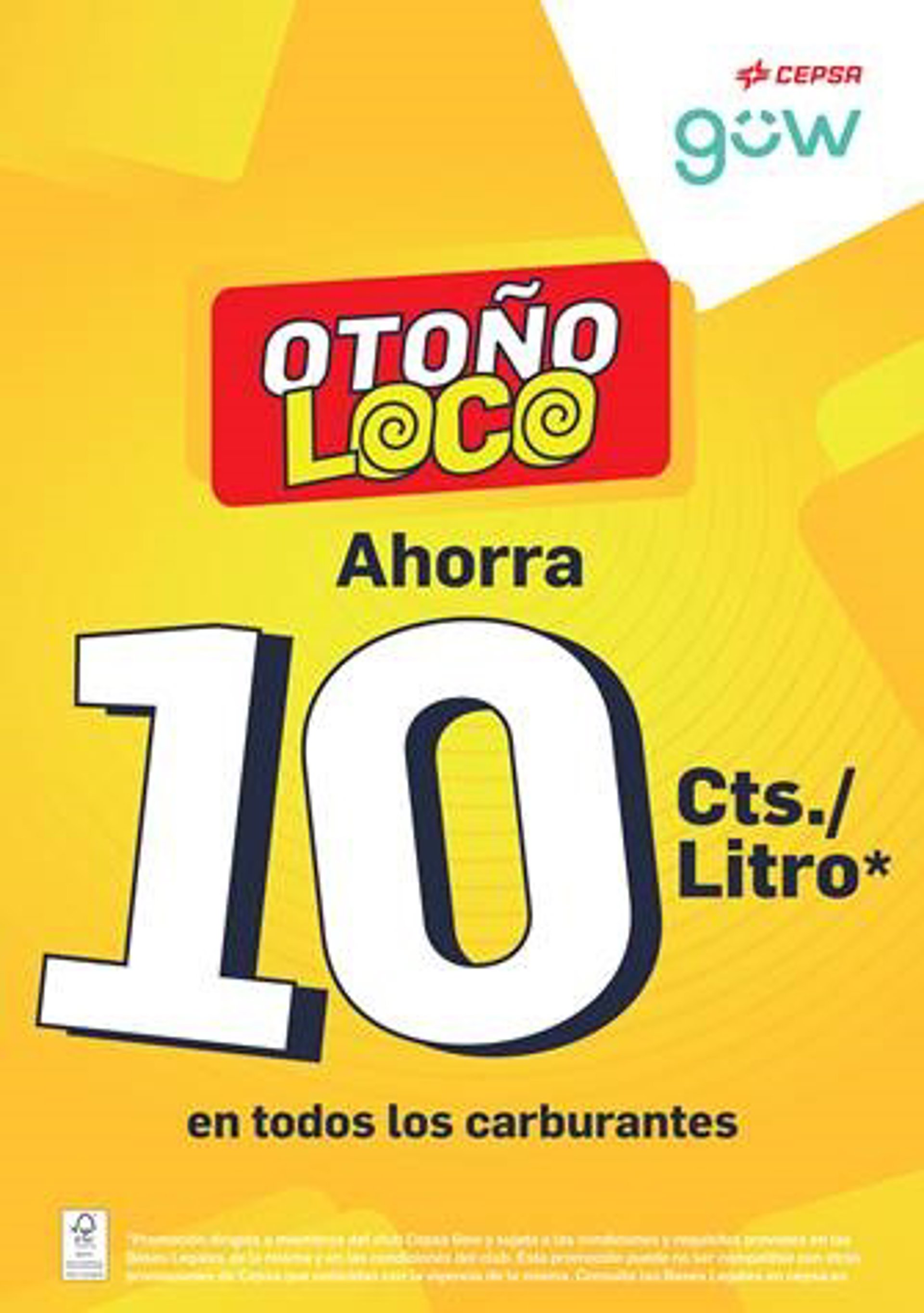 Cepsa ha lanzado una promoción en la que ofrece 10 céntimos de descuento por litro en los repostajes durante todo octubre a los miembros del programa de fidelización Cepsa Gow.