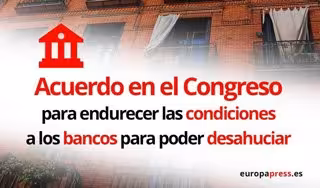 Los bancos no podrán desahuciar a un cliente hasta que lleve al menos un año sin pagar, frente a los tres meses necesarios ahora. El Congreso ha acordado elevar los meses de impago requeridos a las entidades financieras para ejecutar un contrato de hipoteca, el paso previo a un posible desahucio.