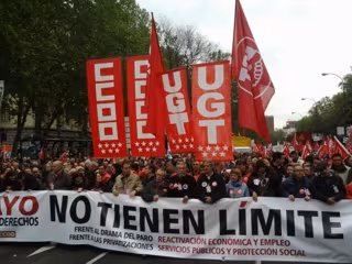 La manifestación central de las más de 80 convocadas en todo el país para conmemorar el Día Internacional del Trabajo ha arrancado en la madrileña Plaza de Cibeles a las 12.05 horas bajo el lema 'No tienen límite. Lucha por tus derechos', marcada este año por los peores datos de paro de la democracia: 6,2 millones de desempleados y una tasa de paro que supera el 27%.