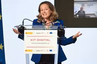 Archivo - La vicepresidenta primera y ministra de Asuntos Económicos, Nadia Calviño, interviene en la presentación del Kit Digital, en Ifema Madrid, a 24 de noviembre de 2021, en Madrid (España). - Gustavo Valiente - Europa Press - Archivo