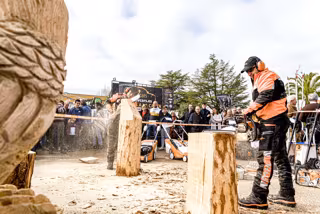 Una demostración de corte de madera en Agroexpo - FEVAL - Archivo
