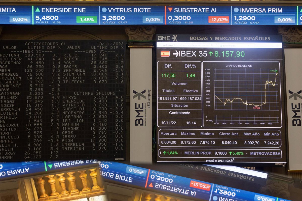 Un panel del Ibex 35 en el Palacio de la Bolsa - Eduardo Parra - Europa Press