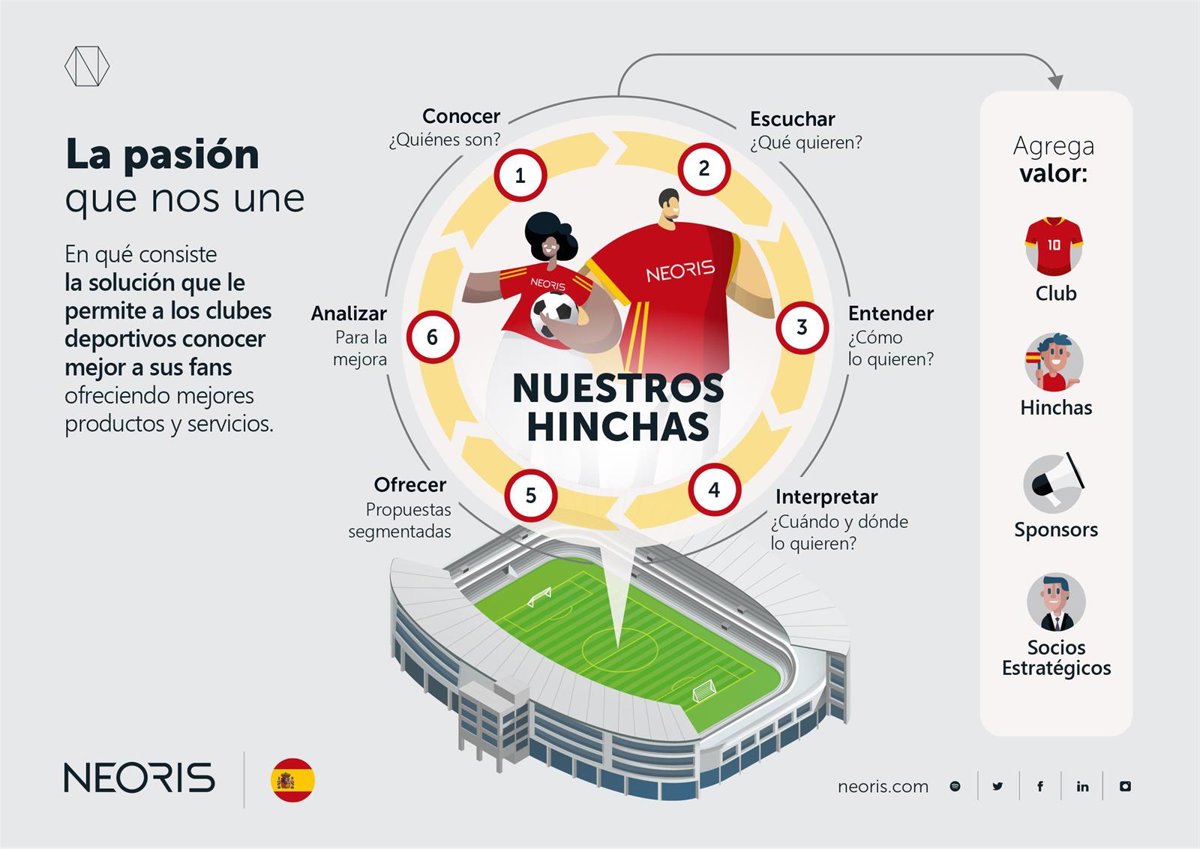 Con motivo del reciente inicio del Mundial de Qatar 2022, NEORIS ha impulsado un modelo de Data Driven para reforzar el vínculo que mantienen los equipos con sus hinchas y potenciar el negocio de los patrocinadores. A través de esta aplicación, el acelerador digital global con más de 22 años de experiencia en el sector tecnológico busca que las decisiones estratégicas que tomen los clubes estén basadas en el análisis y la interpretación de datos.