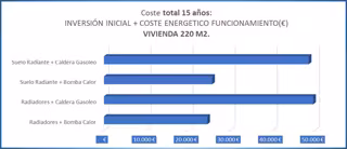 Un usuario que tenga una vivienda unifamiliar de 220m2 con caldera de gasoil puede tener un consumo anual para calefacción de 2.800 litros. El precio medio actual de gasoil en España a fecha de publicación está en torno a los 1,556/litro, por lo que calentar una vivienda unifamiliar, de tamaño medio, tendrá un coste de 4356,8, un precio que supone un auténtico reto para la mayoría de las familias.