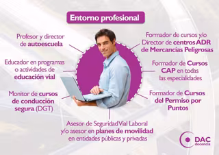 Docentes con súper poderes educativos que podrán ejercer como: Profesores y Directores de autoescuelas, Profesores en cursos del permiso por puntos (sensibilización y reeducación vial), Profesores y directores de centros de Mercancías Peligrosas, Profesores de los cursos CAP (conductores de vehículos pesados).