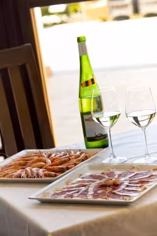 La región de Huelva ofrece una amplia selección de alimentos de primera calidad. El mar proporciona gambas blancas, chocos, sardinas y lubina, entre otras variedades. La tierra complementa la oferta con productos como la caña de lomo, el morcón, el salchichón de la Sierra o la presa paleta ibérica. Todos estos alimentos son la base de una carta variada en la que no faltan los arroces, muy bien valorados por los clientes.