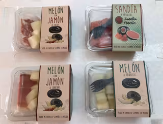 Entre las propuestas más destacadas se incluyen una nueva forma de comer melón con jamón mediante un recipiente termosellado de 250 gramos que consta de dos espacios diferenciados para mantener la textura de los productos inalterada. Esta frescura se garantiza gracias a la empresa holandesa Rijk Zwaan, que proporciona la semilla para un Melón de Autor de una textura más consistente. Por eso, el producto que se ofrece envasado tiene una vida útil de 6 días en frío y se enfoca a personas que disponen de poco tiempo y quieren alimentarse de manera saludable, fresca y cómoda.