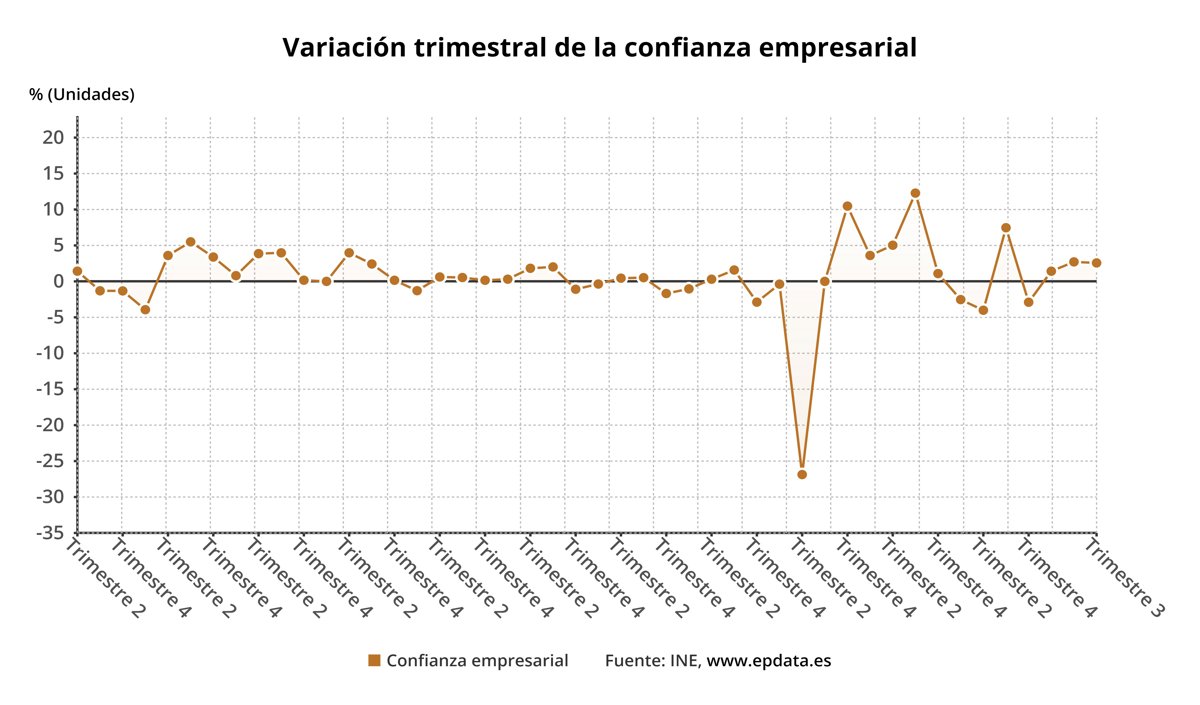 Durante el tercer trimestre de este año, la confianza empresarial subió en todos los sectores económicos, en todos los tamaños de empresa, y en todas las comunidades autónomas.