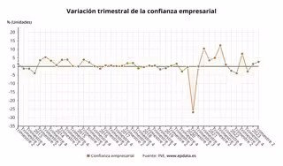 Por comunidades, la confianza empresarial sólo bajó en País Vasco (-2,3%) y en Canarias (-0,2%), y subió en las 15 regiones restantes, especialmente en Baleares (+8,3%), Aragón (+5%), Castilla-La Mancha (+4,9%) y Extremadura (+3,8%).