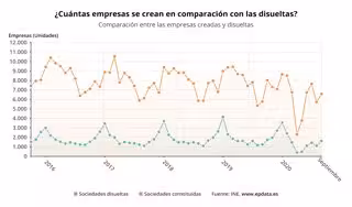En tasa mensual (septiembre sobre agosto), la constitución de empresas creció un 14,8%, mientras que las disoluciones empresariales se incrementaron un 44,5%. En ambos casos se trata de los mayores repuntes en un mes de septiembre en al menos cinco años.