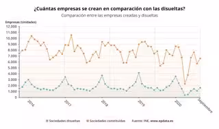 Comparación del número de empresas creadas y disueltas en España hasta septiembre de 2020 (INE) - EPDATA