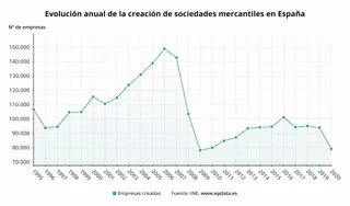 El número de nuevas sociedades mercantiles se desplomó un 15,8% en 2020 respecto al año anterior, su mayor retroceso en 11 años, hasta sumar un total de 79.151 empresas, su menor cifra desde 2009, según los datos difundidos este viernes por el Instituto Nacional de Estadística (INE).